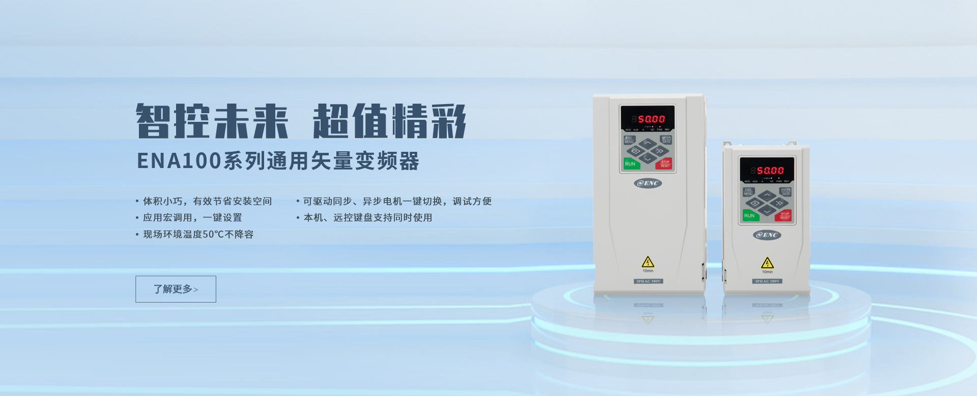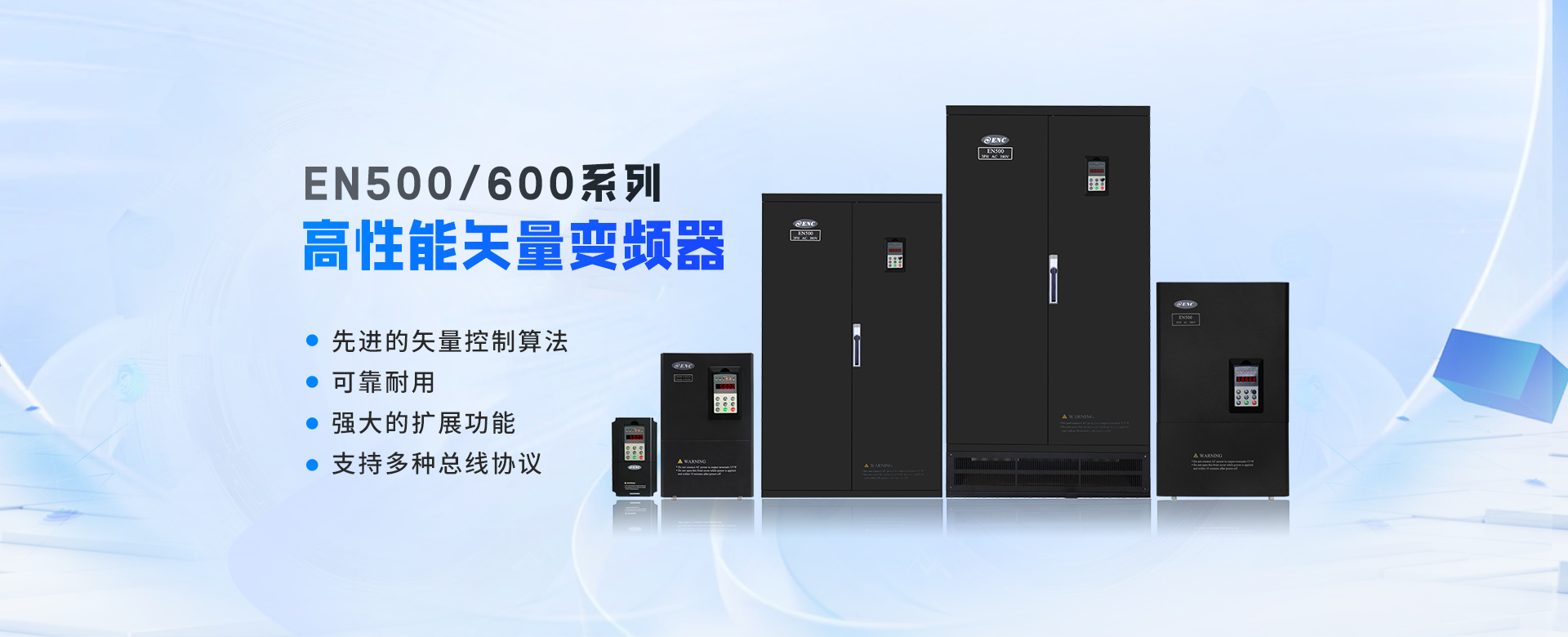 EN500/EN600系列高性能磁通矢量變頻器采用先進(jìn)的控制方式實(shí)現(xiàn)了高轉(zhuǎn)矩、高精度、寬調(diào)速驅(qū)動(dòng),可實(shí)現(xiàn)有PG矢量控制,無PG矢量控制,具有速度矢量和轉(zhuǎn)矩矢量兩種工作方式,能快速限住沖擊電流,廣泛用于高端制造業(yè)。該系列產(chǎn)品控制精度高、速度響應(yīng)快、低頻特性優(yōu)越,智能檢測與保護(hù)完善,豐富的外圍總線擴(kuò)展、端子擴(kuò)展、繼電器擴(kuò)展、模擬量擴(kuò)展等。